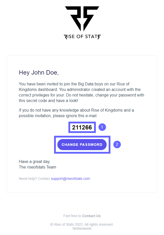 You can find the security code in your email sent by "info@riseofstats.com", next to Number 1 in the picture shown.